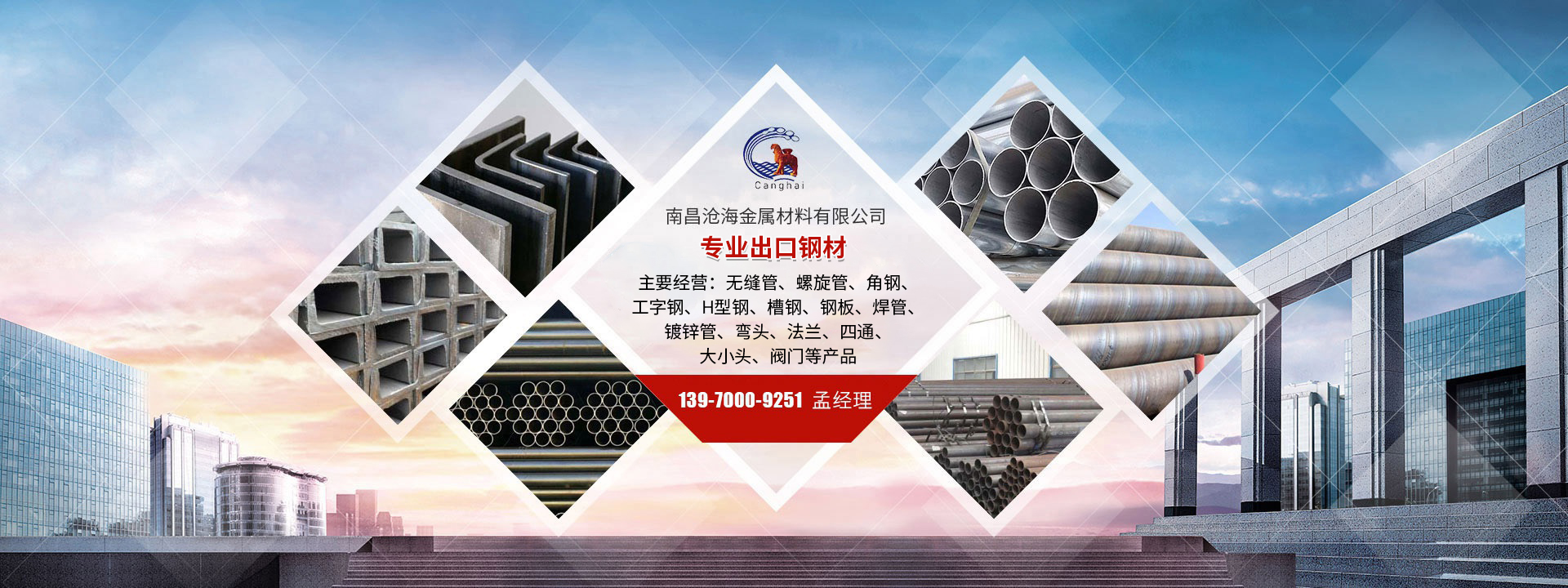 南昌滄海金屬材料有限公司是一家經南昌市工商行政管理局批準注冊的鋼材銷售公司,創辦于2006年,我公司是一家代理和經銷包鋼、冶鋼、馬鋼、萊鋼、新鋼、鞍鋼、安陽、天津等幾大鋼廠的鋼材,主要經營:無縫管、螺旋管、角鋼、工字鋼、H型鋼、槽鋼、鋼板、焊管、鍍鋅管、彎頭、法蘭、四通、大小頭、閥門等產品。長期備有大量庫存,公司銷售立足江西輻射周邊地區,將盡力滿足客戶、服務于客戶,不斷拓寬服務范圍,提高服務深度和精度,追求與客戶長遠的穩定的互動的合作關系。公司秉誠“尊重客戶,誠實守信”的服務宗旨下以“價廉質優,薄利多銷”的理念來恭迎新老客戶的光臨。  本公司一直堅持“恪守信譽,以人為本”的經營理念,在國內打下堅實的基礎。